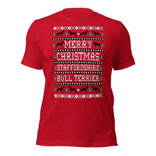 Staffordshire Bull Terrier Ugly Christmas Unisex T-Shirt