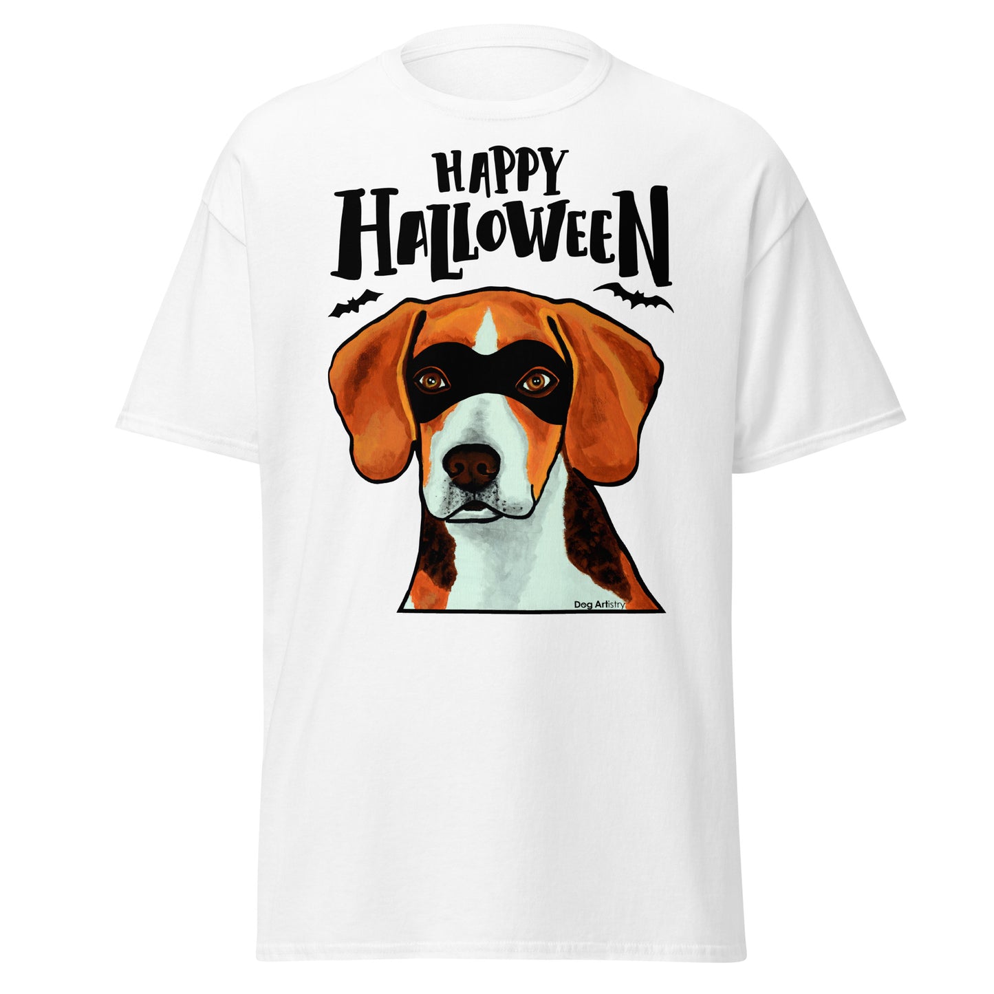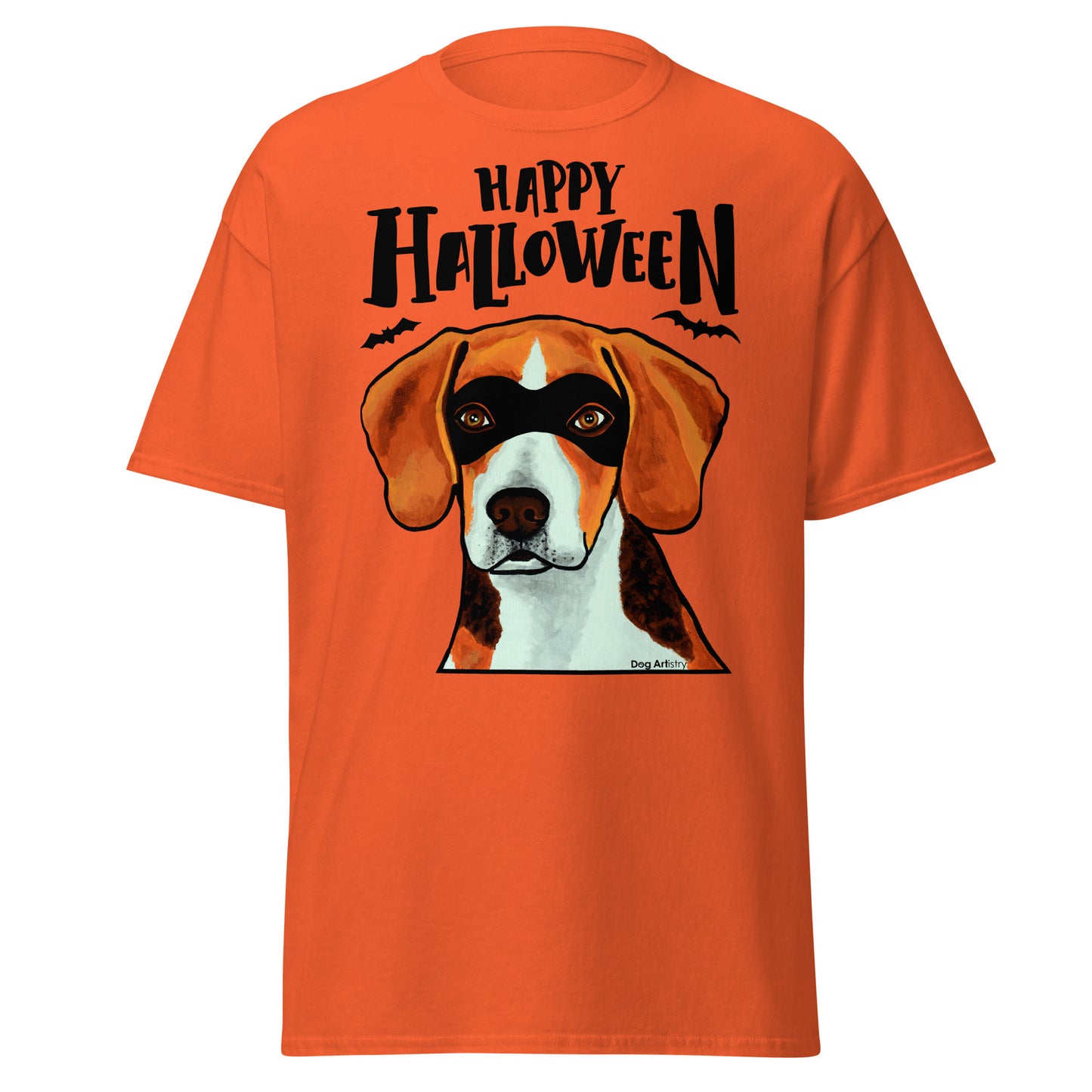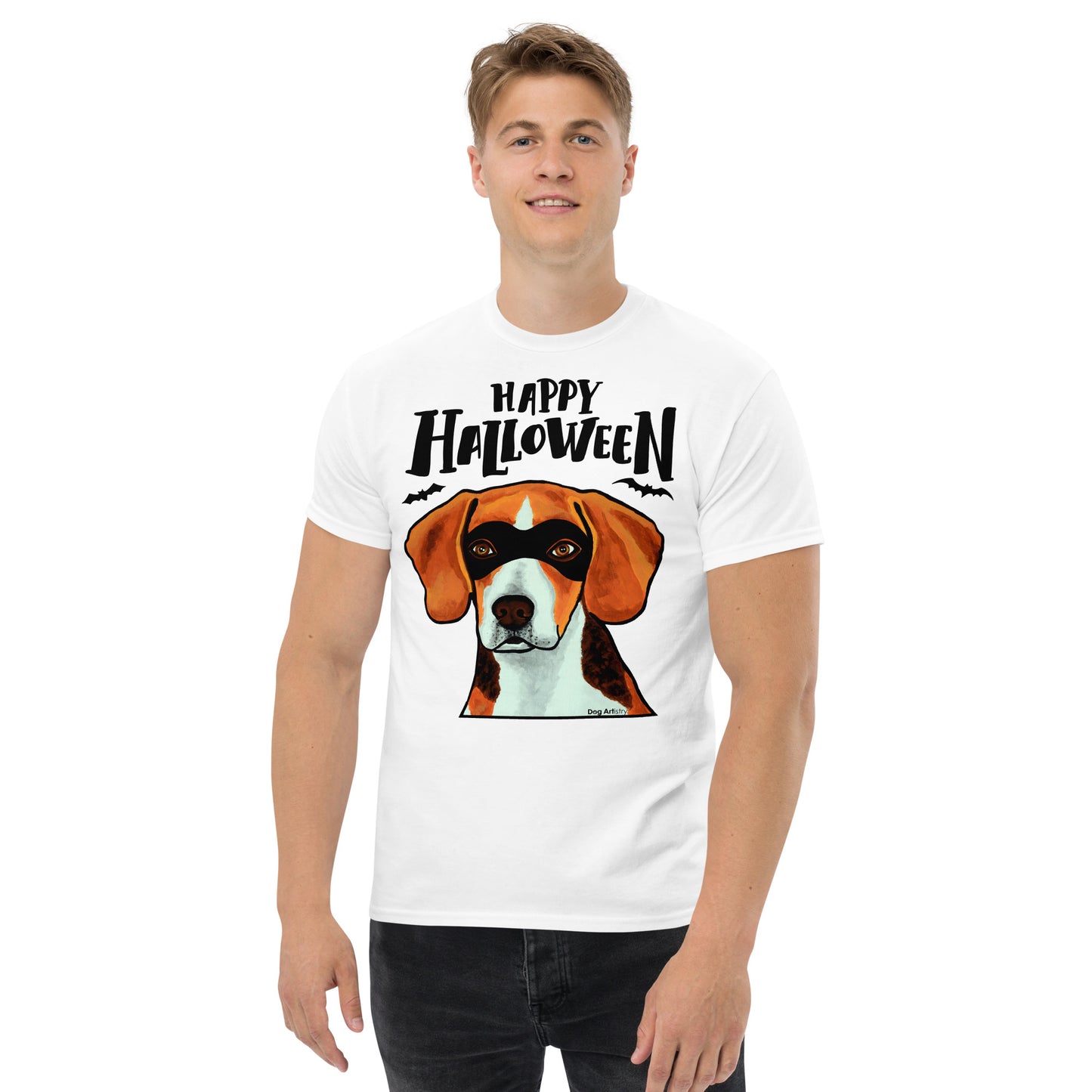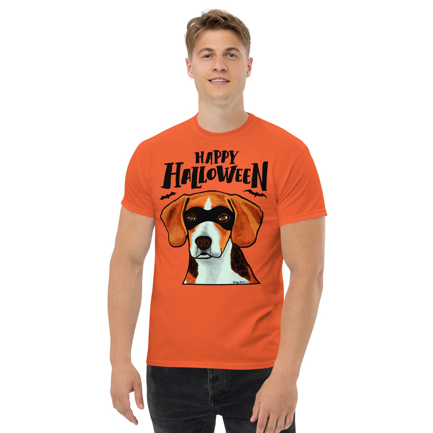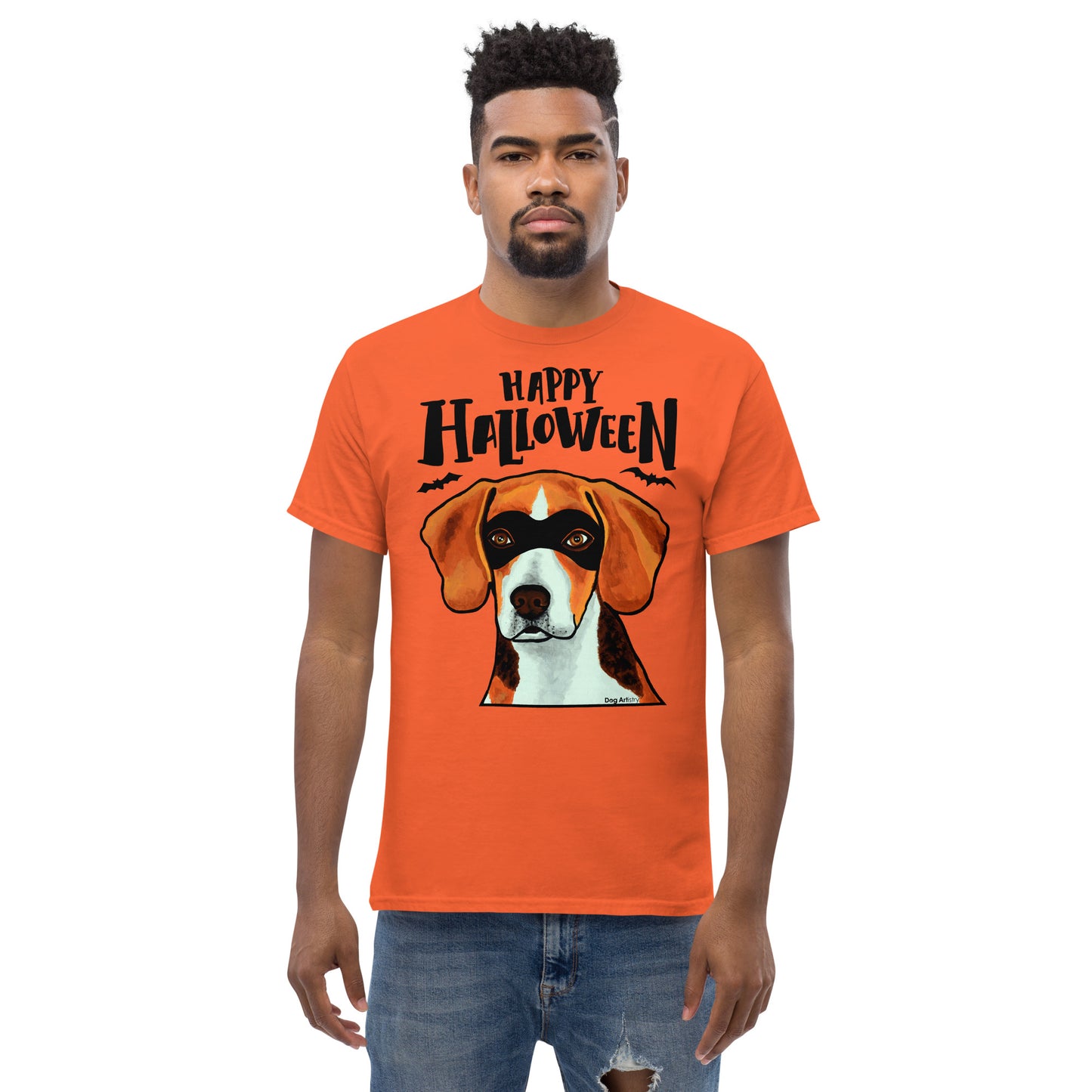 Happy Halloween Beagle Wearing Mask Men's classic tee by Dog Artistry